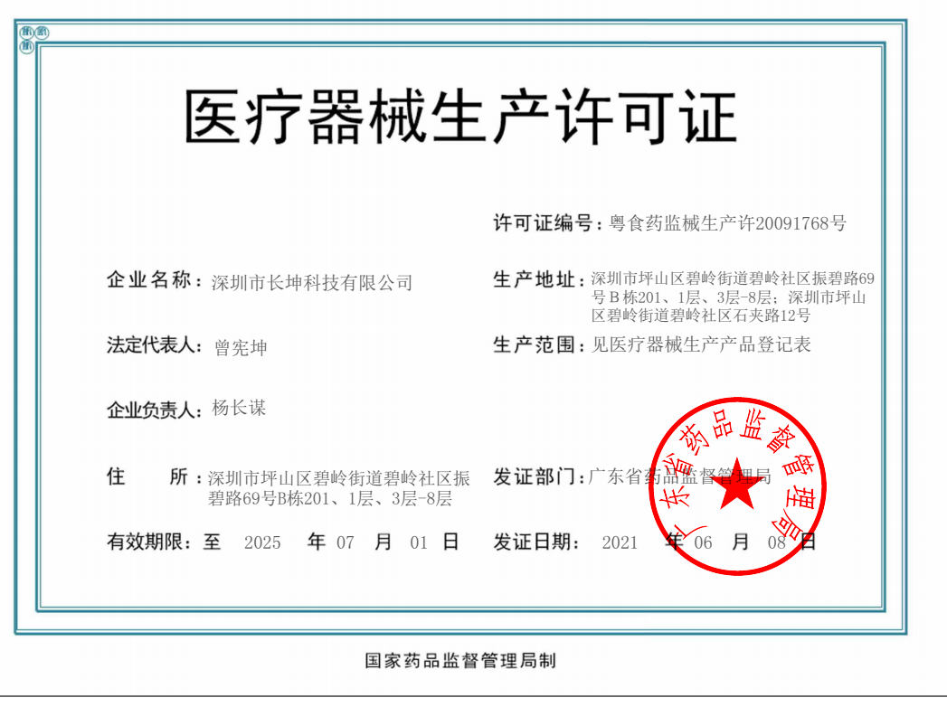 歡迎來到深圳市長坤科技有限公司官網(wǎng)! 粵深食藥監(jiān)械經(jīng)營備20151166號 粵食藥監(jiān)械生產許20091768號